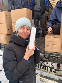 Eräs raamattukuormaa vastaanottamassa ja purkamassa ollut veli vei heti kirjan kotiin vaimolleen. Samana iltana hän jo viestitti: 'Nyt Tanja ei pysty lopettamaan Raamatun lukemista!' Viime kuukausina ihmiset ovat kyselleet, milloin Raamattu tulee Marinmaalle. Nataša kotiseurakunnastani pyysi: 'Larisa, voitko antaa äidilleni yhden Raamatun'. Kun kävin viemässä Tatjana-äidille oman kappaleen, tämä itki ilosta ja sanoi, että Raamattu on hänelle erittäin suuri lahja Jumalalta. Luen aamulla herättyäni ja vielä illalla ennen nukkumaanmenoa, muutoin en saa unta. Aina ennen lukemista rukoilen, että Jumala antaisi minulle ymmärrystä.'